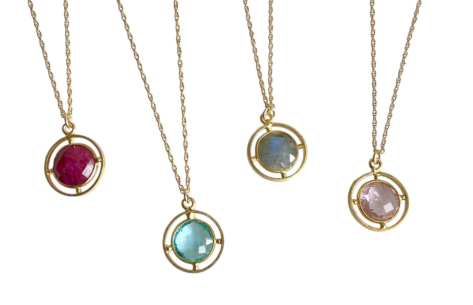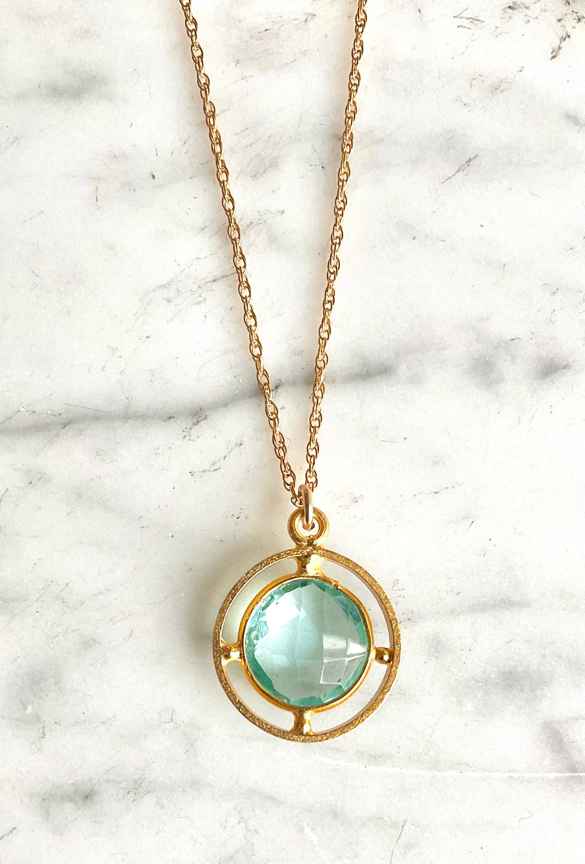 Compass Style Pendant Necklace with Semi-Precious Gemstone